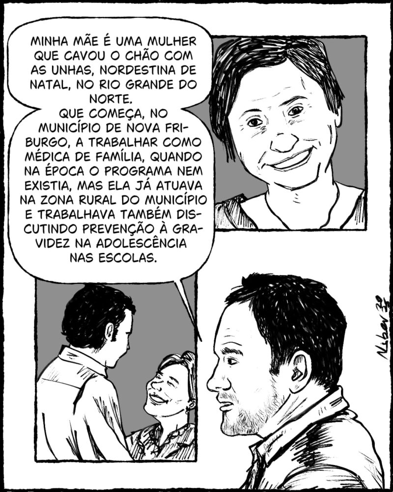 Minha mãe é uma mulher que cavou o chão com as unhas, nordestina de Natal, no Rio Grande do Norte. Que começa, no município de Nova Friburgo, a trabalhar como médica de família, quando na época o programa nem existia, mas ela já atuava na zona rural do município e trabalhava também discutindo prevenção à gravidez na adolescência nas escolas do município. Sou filho de um casal de brizolistas: Saudade, minha mãe e Roberto, meu pai.
