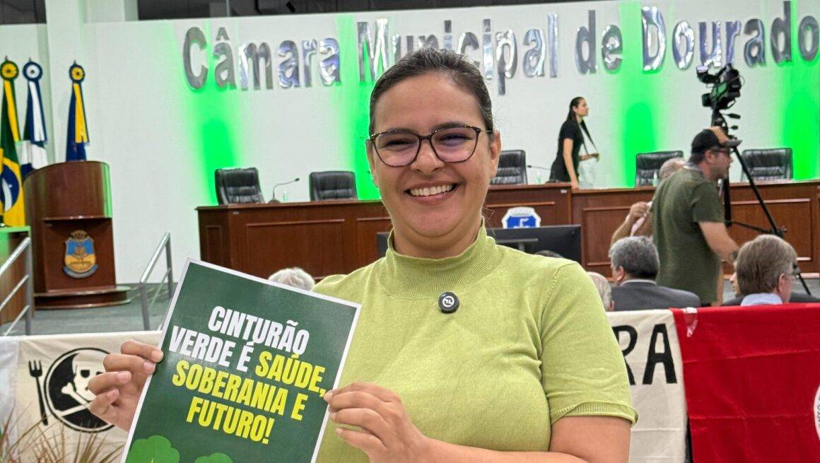 Evento debateu os impactos de venenos nos povos e na natureza Da redaçãoFoto: Carol Dias A deputada estadual Gleice Jane (PT) participou, na noite de 8 de julho, da audiência pública realizada na Câmara Municipal de Dourados com o tema “Entre o Veneno e a Vida: Os Impactos dos Agrotóxicos nos Povos e na Natureza”. O evento, proposto pelo vereador Franklin Schmalz (PT), reuniu autoridades, pesquisadores, lideranças indígenas e representantes da sociedade civil para debater os efeitos dos agrotóxicos na saúde humana e no meio ambiente. Durante sua fala, Gleice Jane reforçou a urgência de um debate técnico e aprofundado sobre o uso de agrotóxicos em todo o estado de Mato Grosso do Sul. A parlamentar destacou que a pauta tem sido recorrente em suas agendas e que a população precisa de respostas concretas sobre os impactos desses produtos na alimentação e na saúde pública. “A gente precisa debater os agrotóxicos nas nossas alimentações. Já realizamos uma audiência pública sobre alimentação saudável, e essa pauta continua chegando até nós. Em Dourados, já existem pesquisas que apontam a quantidade de agrotóxicos presentes, mas ainda não temos estudos suficientes que expliquem o quanto isso está afetando a saúde da população. Precisamos garantir segurança alimentar e investir em pesquisas, universidades e instituições que nos ajudem a aprofundar esse debate”, afirmou a deputada. Gleice Jane também chamou atenção para a contradição entre o alto volume de produção agrícola no estado e a falta de alimentos saudáveis disponíveis -para a população local: “O Mato Grosso do Sul é um estado que fala muito sobre produção, mas não produz alimentos para o povo. Produzimos grãos, mas esses grãos também estão contaminados. Precisamos discutir o que isso significa para a saúde pública e garantir políticas que priorizem a vida.” O vereador Franklin Schmalz, proponente da audiência, destacou a importância de ampliar o debate e buscar soluções concretas. “Precisamos proteger a saúde da população e o meio ambiente. Essa audiência é um passo importante para construirmos políticas públicas mais responsáveis e sustentáveis.” A audiência pública reforça o compromisso de lideranças políticas e sociais com a construção de um modelo de desenvolvimento que respeite a vida, a natureza e os direitos das futuras gerações. Dados e cenário atual A audiência também trouxe à tona dados preocupantes sobre a contaminação do rio Dourados. Segundo levantamento da Embrapa Agropecuária Oeste, foram identificados 33 tipos de agrotóxicos nas águas do rio, o que acende um alerta sobre os riscos à biodiversidade e à saúde das comunidades ribeirinhas. Instagram Twitter Youtube Tiktok