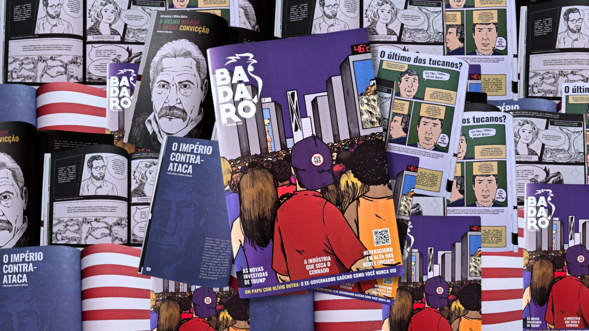 Está à venda a nova edição impressa da Revista Badaró, referente ao primeiro semestre de 2025. Com uma mudança no formato, que passa do A5 para o americano (17x26cm), a nova versão traz 44 páginas de miolo com jornalismo em quadrinhos e narrativas híbridas, em produções totalmente exclusivas. A primeira Badaró impressa de 2025 marca uma nova fase para a revista. A partir dela, a principal publicação será semestral, com edições de bolso em alguns meses intercalares. Clique aqui para comprar e aqui para assinar. Confira os conteúdos Entrevista com Olívio Dutra: o governador gaúcho bateu um papo sobre as enchentes que assolaram seu estado em 2024, além de análises e perspectivas sobre o governo Lula e a esquerda brasileira. A indústria da mudança… climática: reportagem em quadrinhos explica os impactos ambientais da agroindústria, sobretudo em biomas como Cerrado, Pantanal e Amazônia. O império contra-ataca: em um híbrido entre quadrinhos e produção textual, a matéria traz dados sobre a guerra comercial de Trump e traça perspectivas sobre a geopolítica estadunidense dos próximos quatro anos. O futuro das redes: este artigo de opinião com trechos em quadrinhos traz uma análise sobre o crescimento cada vez mais agressivo de discursos neofascistas nas redes sociais. O último dos tucanos: no último reduto eleitoral do PSDB, Eduardo Riedel se vende como adepto de uma “nova política”, mas repete velhas fórmulas. A situação é analisada com acidez nesta coluna em quadrinhos. — Colaboraram nesta edição: Vitória Regina (edição, direção, texto e arte); Norberto Liberator (edição, direção, texto, diagramação e arte); Melissa Aguiar (arte) e Mannu Leones (arte). Instagram Twitter Youtube Tiktok
